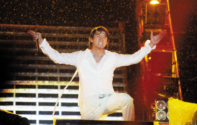 演唱会开始之后,全场1万个座位都座无虚席,恶劣的天气也阻挡不了人们的热情。我的票是请柬票,是坐在主席台的,华健先以一首还要爱你开场,再唱再爱我吧时他向台的左面走过来,前后左右的观众纷纷给指示叫我献花去,我先走出去,再在我的伙伴手中接过花束,这时华健正对着远处看台的观众投入的唱,待台下的观众提示华健才看到举高的花,我还要蹬起双脚才能够把花送到高台上蹲下并伸手出来接花的的华健,换上左手抱着花,华健伸出右手来跟我用力的握了一下,然后把花高举给全场观众看,满场的掌声和欢呼声齐向华健致意,我兴奋得跳起 ,回到座位的途中,还有声声恭喜,这一场面令我永生难忘!
