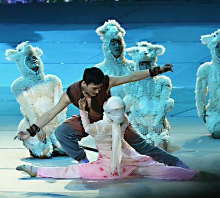 《花儿》是中国西部民歌灵动的跳跃,是东方的花儿姑娘与牧羊人凄美的爱语;舞剧以缤纷的想象和浪漫的表达,诉说了黄土地上人们、羊们刻骨铭心的牵挂以及生命之花永恒的瑰丽。