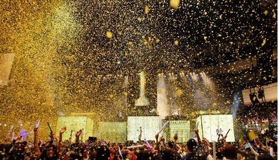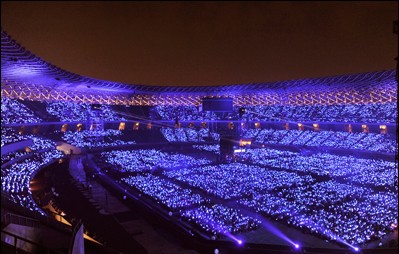 这次,五月天特别准备的秘密武器首次尝试使用的“交互式荧光棒”,发放给我们的荧光棒全都会跟随音乐、灯光的变化而同时变换颜色,幻化出梦境般的七彩灯海奇观!