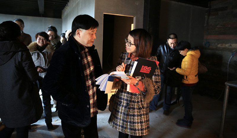 海曙区启运86微电影主题园区总经理孙雪萍介绍了园区发展近况。目前园区招商情况良好,各路影视精英团队纷至沓来,园区成长前景可期。图为爱珂文化集团董事长等一行在园区参观并接受记者采访。