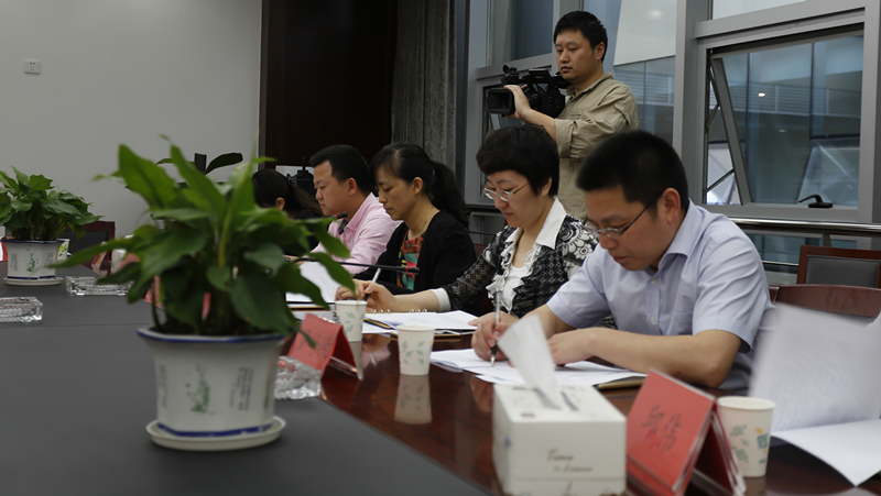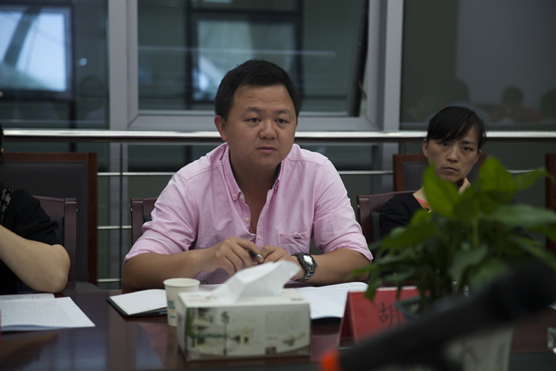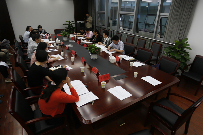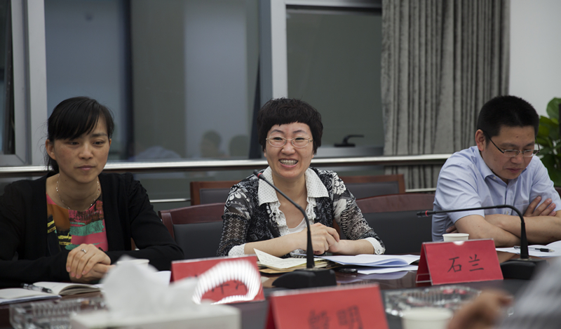考察结束后,石兰一行在文体中心的会议室中召开了座谈会。