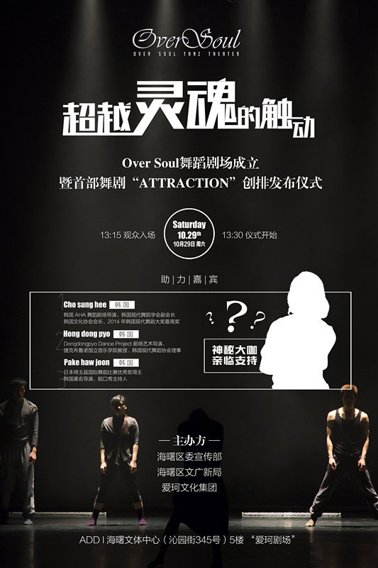 由宁波爱珂文化集团主办的Over Soul舞蹈剧场成立暨首部舞剧“ATTRACTION”创排发布仪式将于10月29日在宁波海曙文体中心举行。