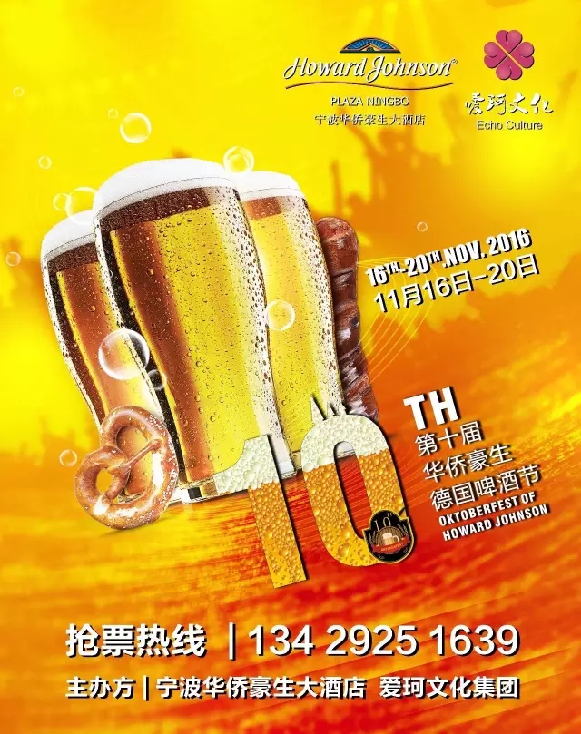 第十届华侨豪生德国啤酒节就要开始了,11月16日,德国慕尼黑啤酒节旋风将再次强势登入宁波,狂欢、畅饮、美食、乐队,为啤酒迷们准备了一场饕餮盛宴。